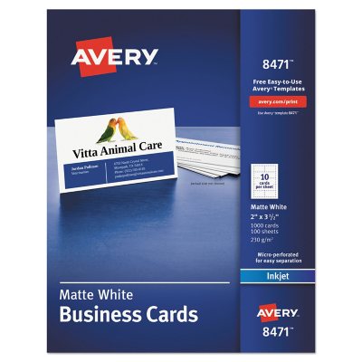 New ideas for making greeting cards with your kids. These avery business card sheets feature a proprietary clean edge design so that cards separate cleanly from the page and stack smoothly. Avery inkjet business cards, 3.5w x 2l, matte white 250/pack (8371) 4.2 (126) matte white business cards are printable on both sides. Shop staples for avery business cards, 3.5w x 2l, matte white, 30/pack (8374) and enjoy fast and free shipping on qualifying orders. Cut from premium cardstock with a weight of 80lbs / 216gsm.