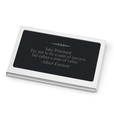 Create a monogrammed gift for your daughter, son, boss, friend, mom, dad or a special coworker. 5.25 h x 4.25 w; Business card holders desk signs paperweights. This folding leather card holder gets down to business. Personalized gift card holders make great corporate gift.